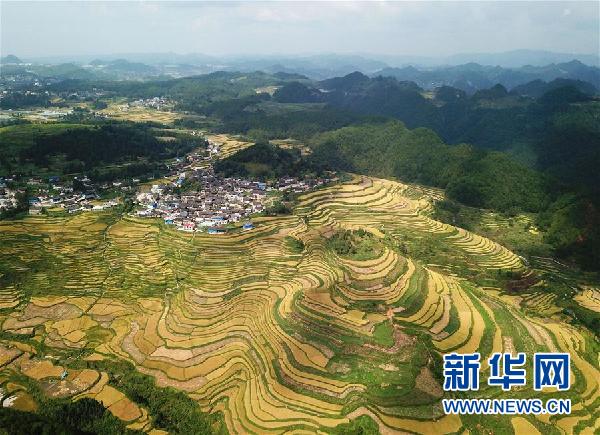 这是9月15日无人机拍摄的贵州省丹寨县龙泉镇高要梯田。杨文斌 摄