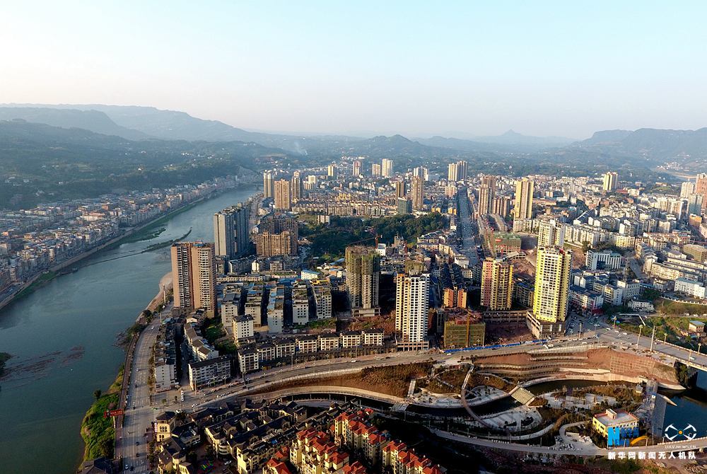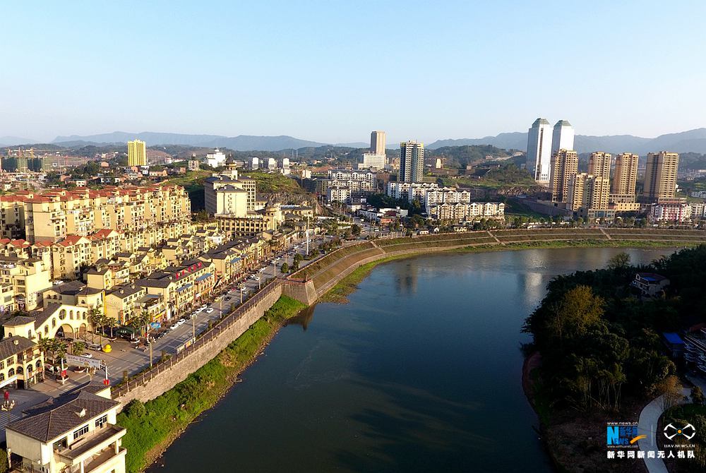 2017年,赤水市正式宣布退出贫困县队列,成为贵州省首个脱贫摘帽的县级市。图为航拍的贵州省赤水市城区,赤水河穿城而过。