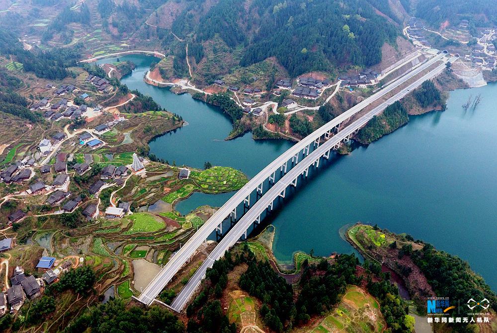 图为穿过贵州从江县洛香镇新安村的高速公路。