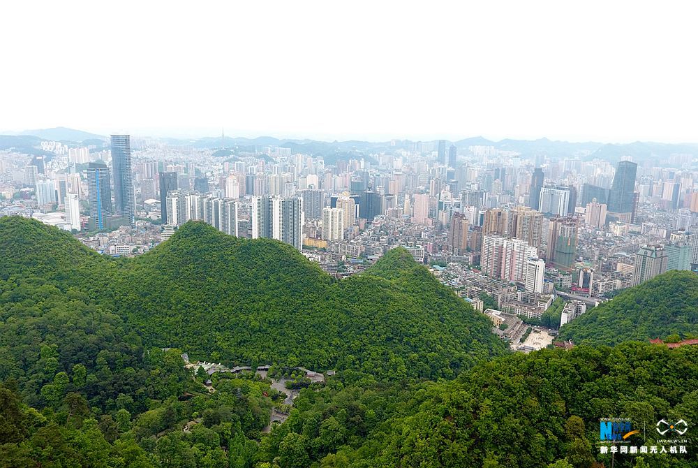 图为航拍贵州省贵阳市城区,“林城”、“中国数谷”是贵阳的名片。