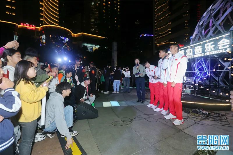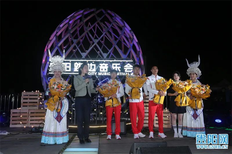 在音乐会的压轴环节,刚刚在亚运会上勇夺冠军、载誉归来的贵州健儿帅常文、冯朝朝、杨海雷登台,与全场观众一起合唱《追梦赤子心》,共勉永不言败的体育精神。“在家乡参加这样一场接地气的音乐会意义非凡,一方面分享了我们夺冠的喜悦,让更多人知道了皮划艇这一体育项目,另一方面和大家一起放松享受音乐,以更好的精神面貌面对新的挑战。”在杭州亚运会皮划艇静水女子200米双人划艇比赛中摘金的帅常文说。