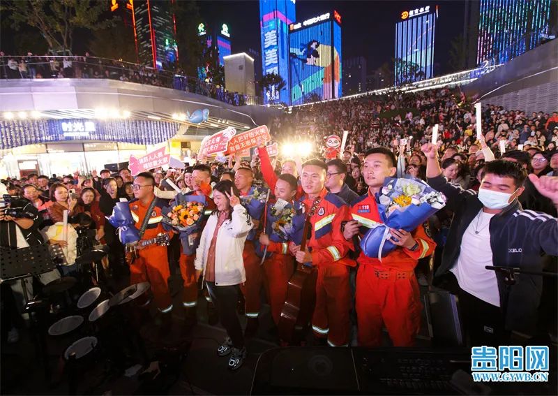 南明河畔、甲秀楼旁,全民享“乐”,唱响夜空。10月14日晚,贵阳路边音乐会·甲秀楼现场围满了前来听歌唱歌的市民游客,亚运会冠军帅常文、冯朝朝、杨海雷,贵州省文明旅游志愿者形象大使阿音坊组合,3支贵阳乐队及音乐爱好者登台献唱,将现场氛围不断推向高潮。