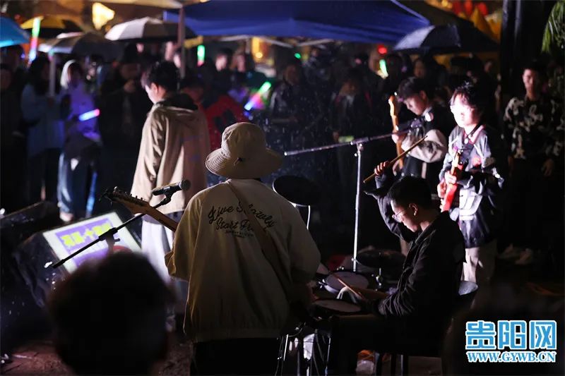 “看到上次雨夜里的路边音乐会燃爆十字街、刷爆朋友圈,今天我专门赶过来感受一番,果然名不虚传。”贵州航空职业技术学院大一学生刘佳丽是个乐迷,这次专门叫上同学一起过来参与音乐会。