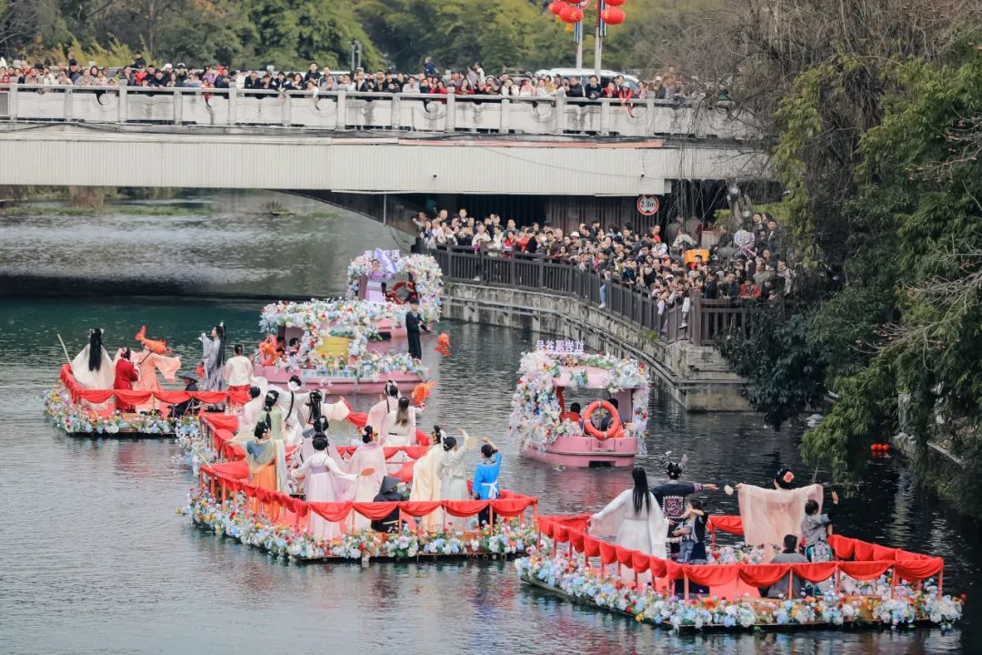 根据元宵传统习俗,将“舞龙、舞狮、小丑、杂技、踩高跷”等元素整合,形成巡游方阵,沿途通过发放福袋、新年签、糖果、消费券等方式,打造贵阳不夜元宵。