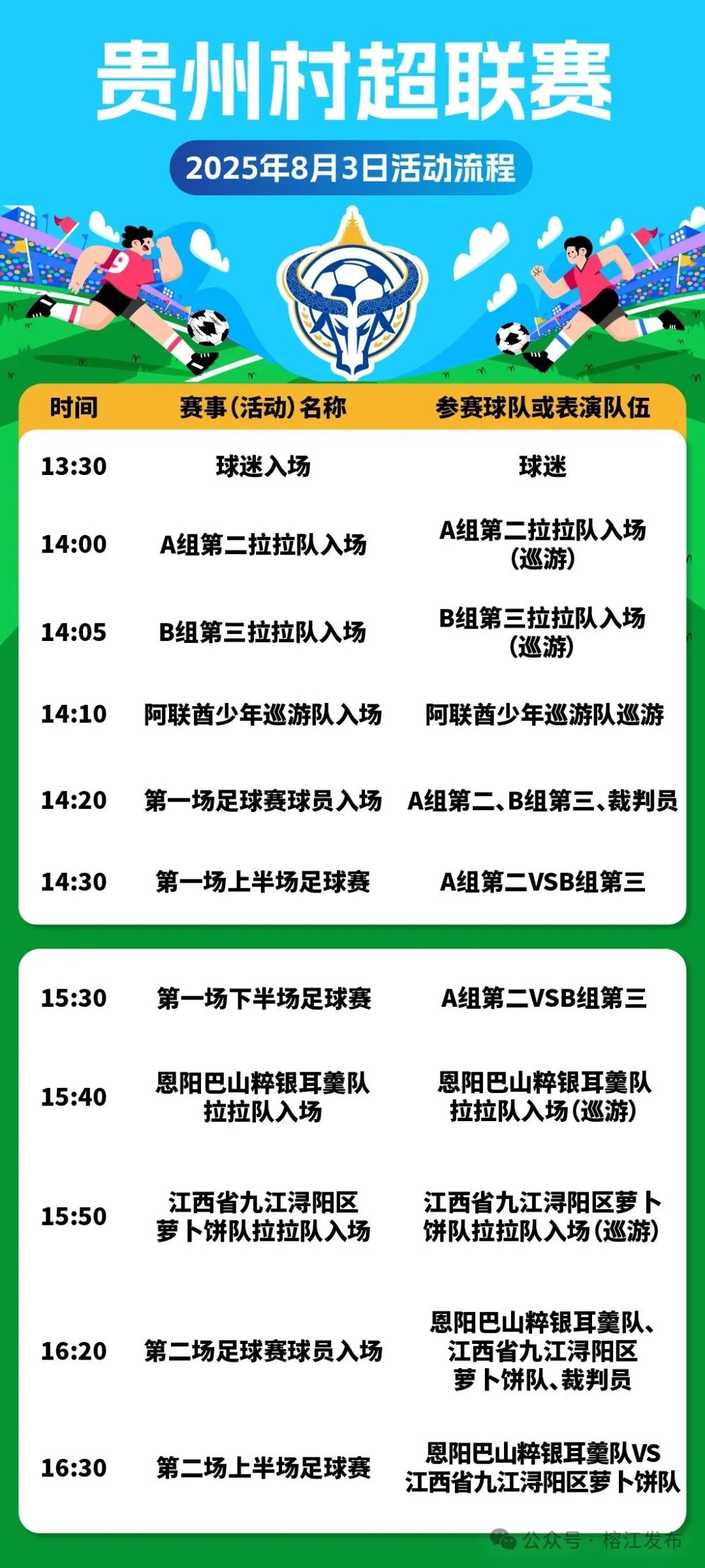 8月3日“村超”周日流程出炉!八强淘汰赛、阿联酋少年巡游、美食PK,美好周末,“村超”与您共度