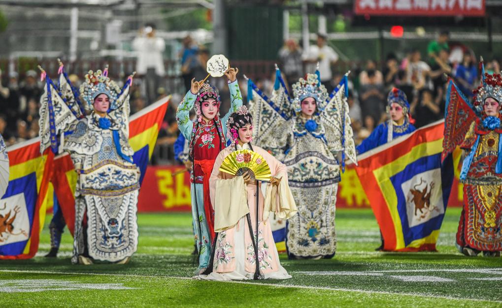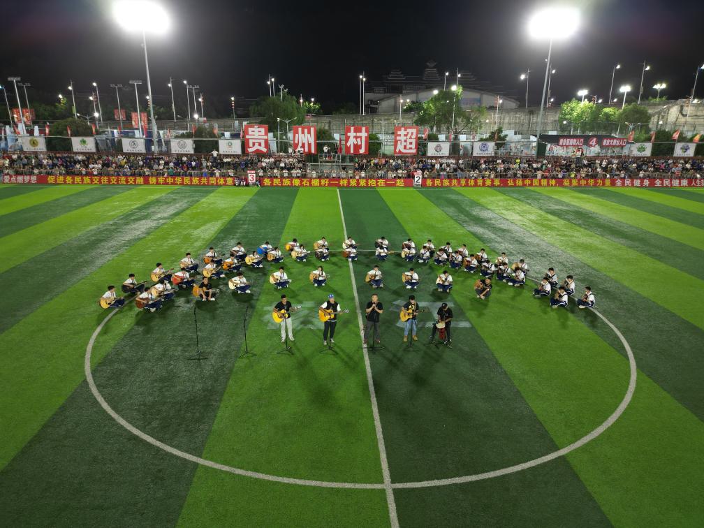 辽宁东港草莓足球队带来唢呐表演、中山大学凤庆滇红茶足球队带来芦笙舞、毕节南山羊肉粉足球队带来彝族舞蹈……在“带着非遗上村超”“来村超约场球”等活动的聚力汇智作用下,榕江携手各地推动了“村超”流量的共建共享。