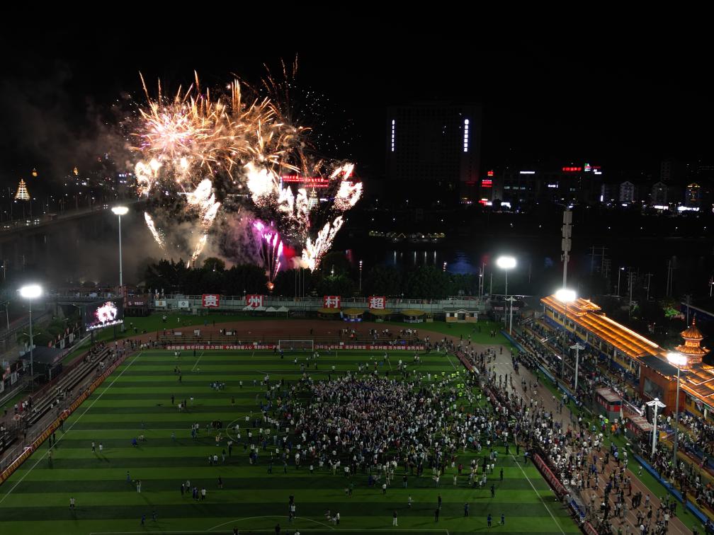从全明星比拼,到中场的乐队表演,再到终场的小型烟花秀,当晚的庆祝活动惊喜连连。“‘村超’一直在持续打造文体‘嘉年华’,不断丰富赛事内容,力争给球迷和游客带来全新的体验和持续的欢乐。”贵州“村超”组委会成员、榕江县文化馆馆长李莎介绍,“村超”新赛季开启决赛阶段的比赛以来,除了延续上赛季的拉拉队巡演、美食投喂、中场表演等精彩内容外,还推出了“全民K歌”和“万人蹦迪”等活动,体验感和欢乐度都得到了提升。