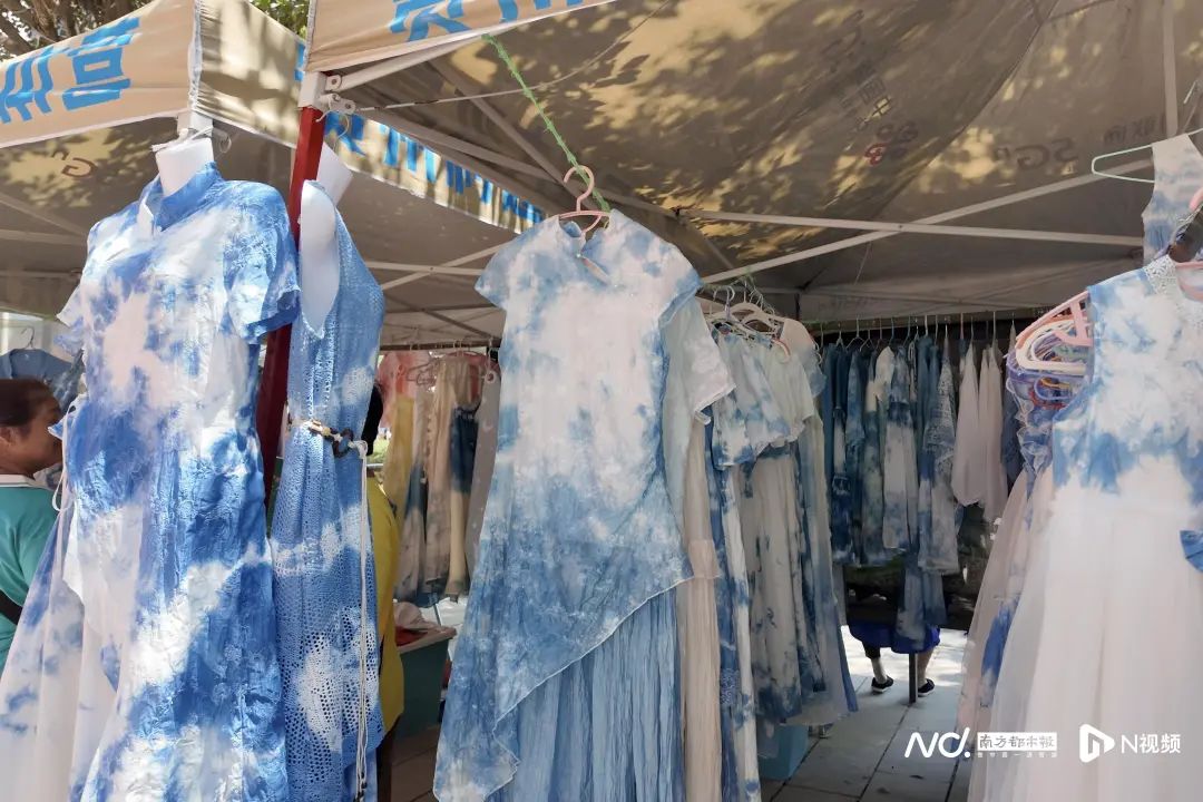 王大姐在路边卖扎染的衣服。南都N视频记者 敖银雪 摄
