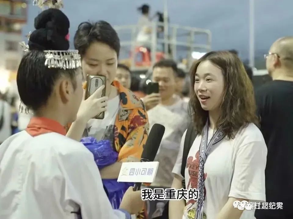 倪宁尉在“村超”现场接受小记者采访(倪宁尉 供图)