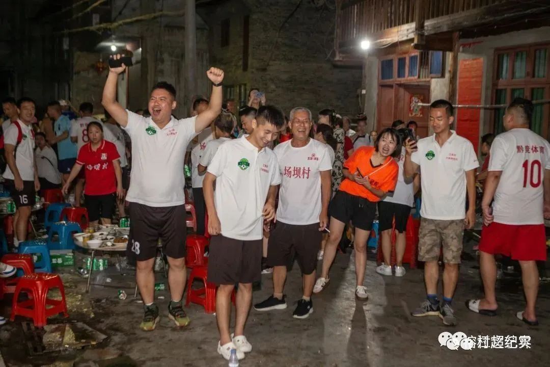 她用心用情地在微信朋友圈里写道:电灯照着加班的人,星星照着勤劳的人,每逢村超时刻,她们总能放下手里的活,聚在一起为场坝村足球队入场做准备。