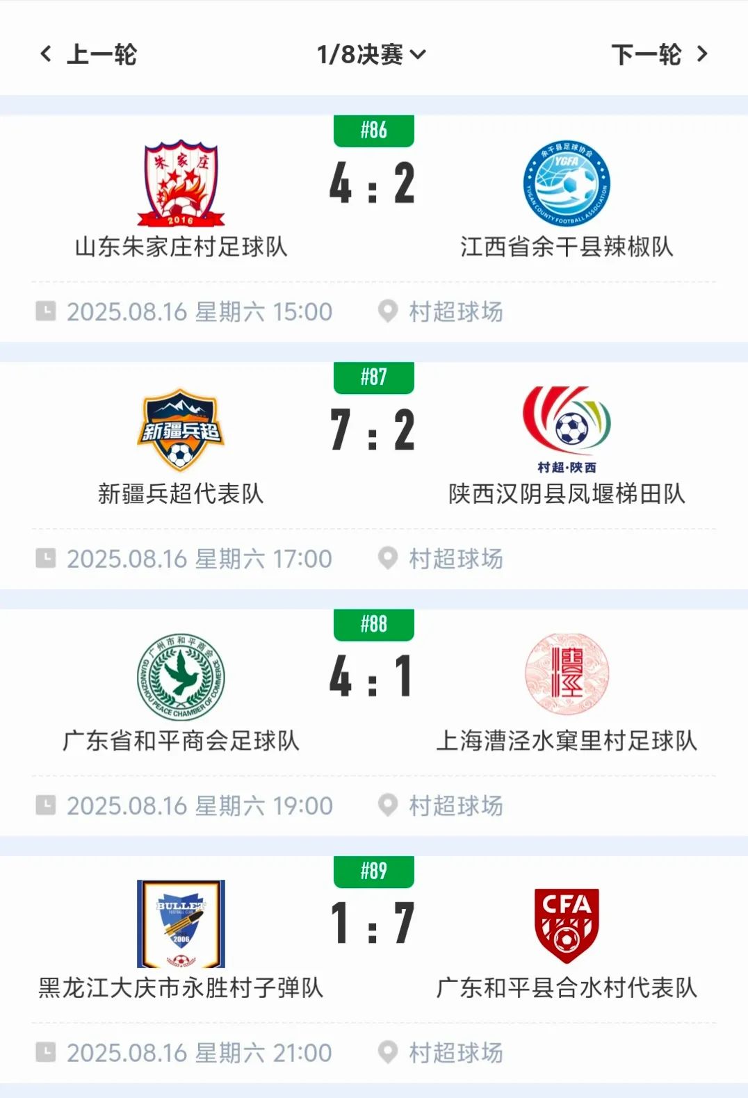 8月10日,来自全国的51支草根球队在贵州榕江展开激烈角逐。1/8决赛比赛战况如下: