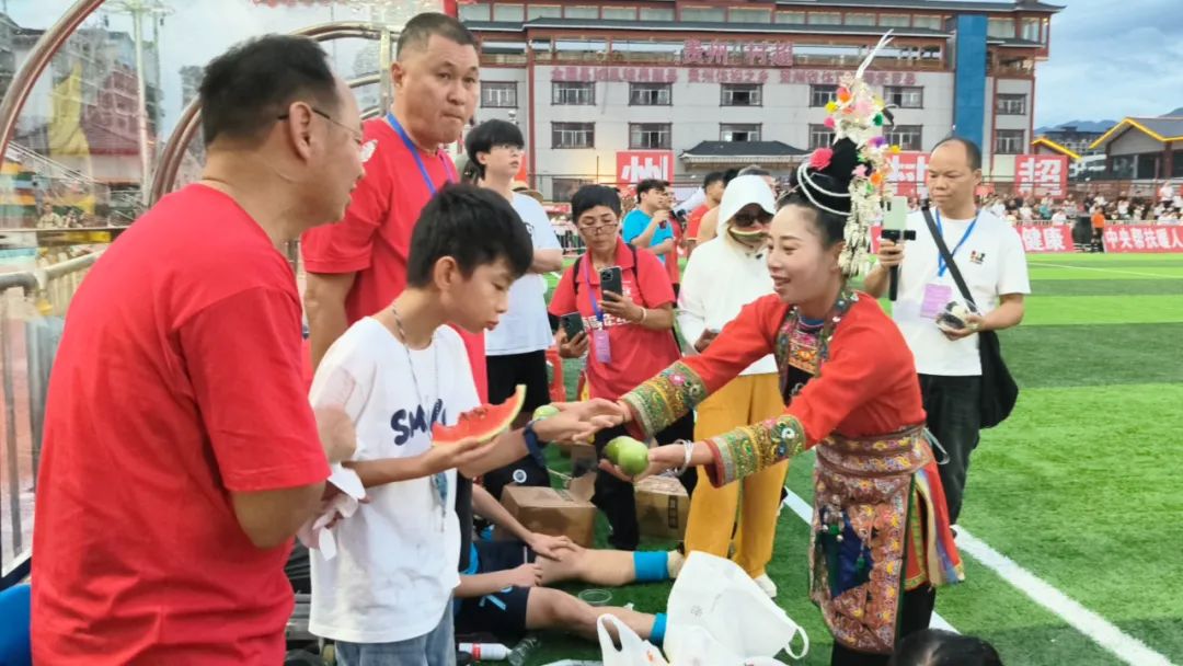 “作为东道主,要为所有八强球队加油!”球迷王荣胜的话道出了当地群众的心声。比赛间隙,榕江热心群众自发为各支球队送来西瓜、百香果、卷粉等特色食品,让远道而来的球员们切实感受到“甜甜榕江”的热情与诚意。