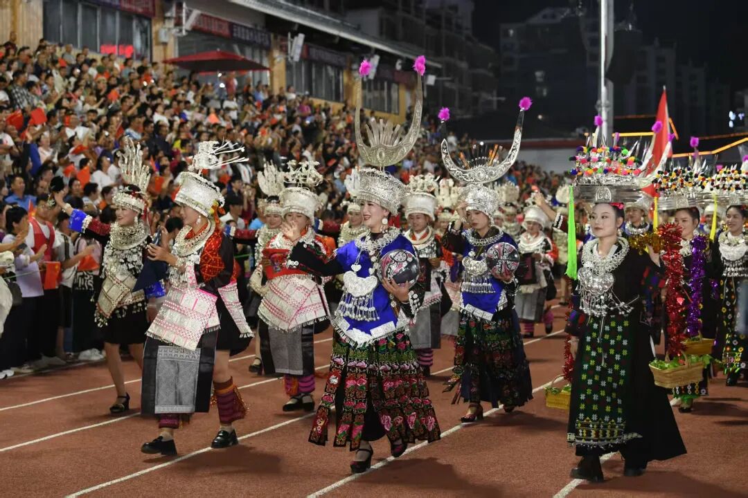 安顺赛区紫云县13个乡镇(街道)的少数民族方队依次入场,浓郁的民族风情在绿茵场精彩展现。黔南赛区三都县想冲流量榜,将村超和村马结合,两大IP碰撞出超级玩法。毕节赛区七星关区激昂的“铃铛舞”“腰鼓舞”成为给球员加油最振奋的旋律;铜仁赛区石阡县,嘣嘣鼓、石阡木偶戏让观众积极分享朋友圈;六盘水赛区苗族芦笙舞动感十足……首届贵州村超正以多元的民族风采与超强吸引力持续点燃基层体育的热情。