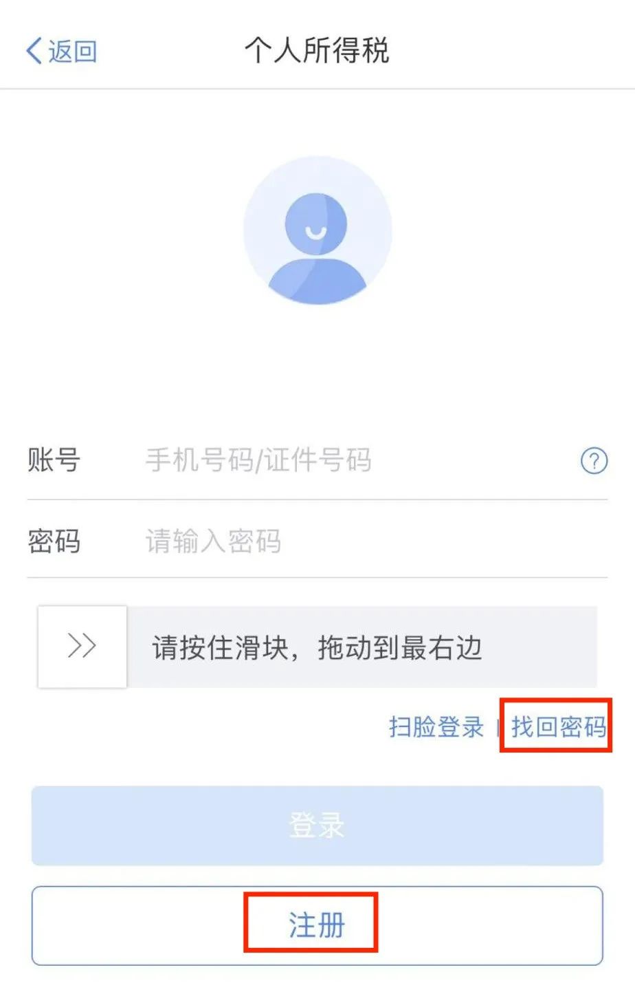 如果是首次使用个人所得税APP,需要先注册。操作也很简单,可以选择大厅注册码或人脸识别认证注册,然后按照提示录入相关信息即可。