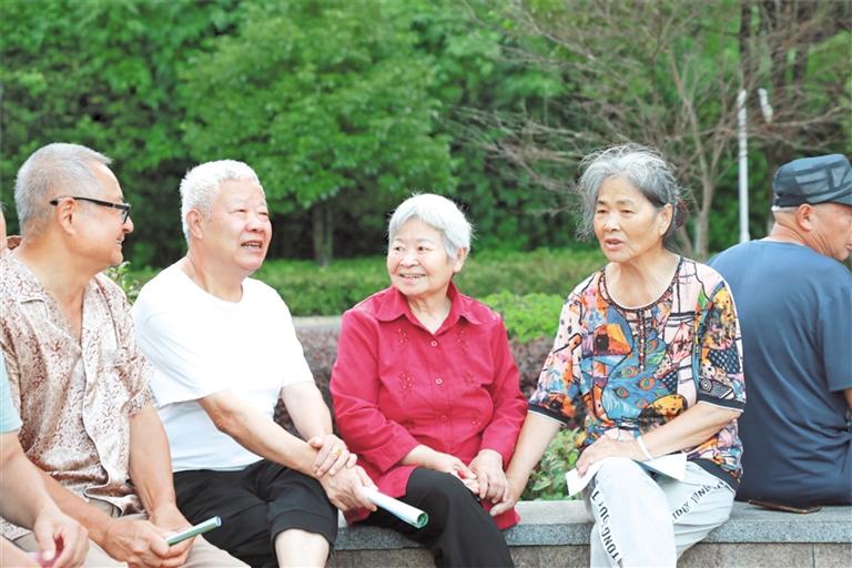 老人们在小区里聊天。 (观山湖区融媒体中心供图)
