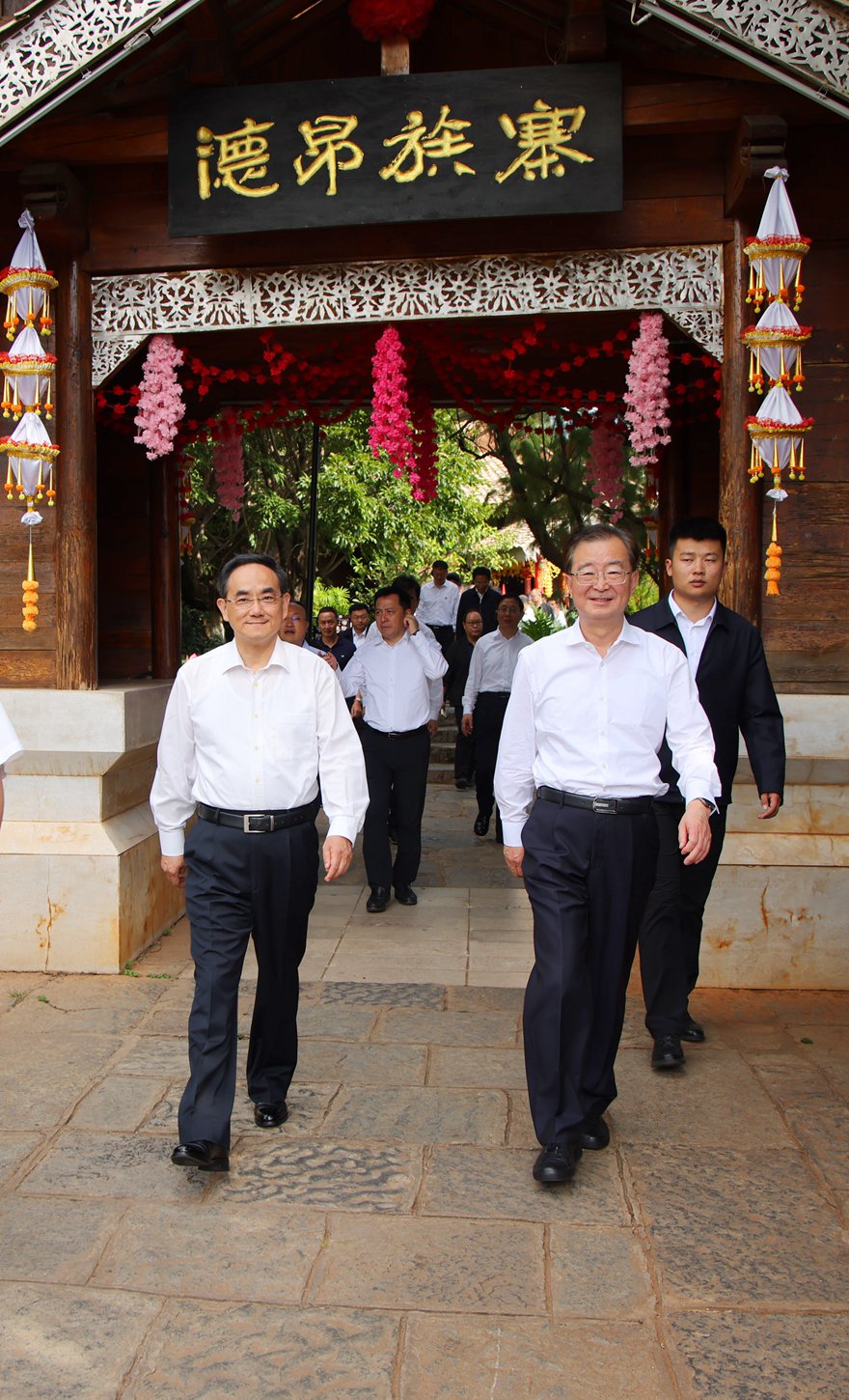 贵州省党政代表团在云南民族村学习考察。