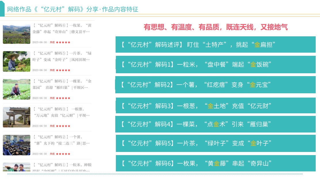 《贵州“六个亿元村”产业振兴探秘》系列报道排比式标题