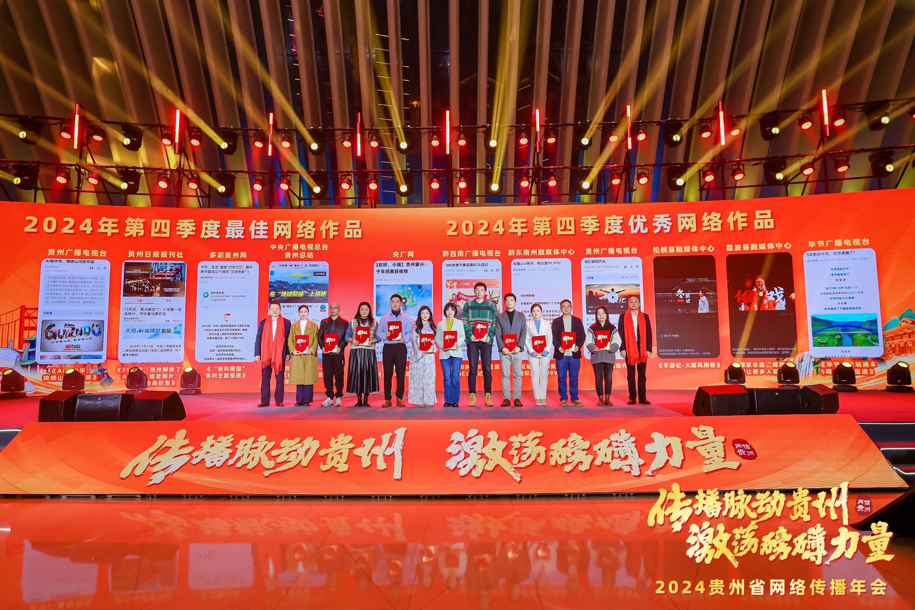 年会现场,颁发了2024年第四季度最佳及优秀网络作品奖,贵州台的《AI我中华,锦绣山河庆华诞》荣获最佳网络作品,作品以AI技术为笔,勾勒出贵州壮丽山河,带领观众打卡热门旅游景点;贵州台的《我们的现代化》荣获优秀网络作品奖,作品运用前沿影视技术,展现了贵州在现代化建设进程中的波澜壮阔画卷。