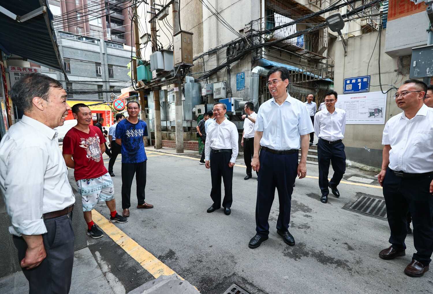 图为李炳军在云岩区省府路周边老旧小区改造项目现场,与市民亲切交流。