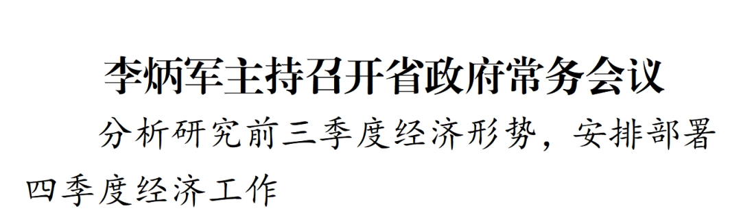 10月16日,省委副书记、省长李炳军主持召开省政府常务会议,分析研究全省前三季度经济形势,安排部署四季度经济工作。