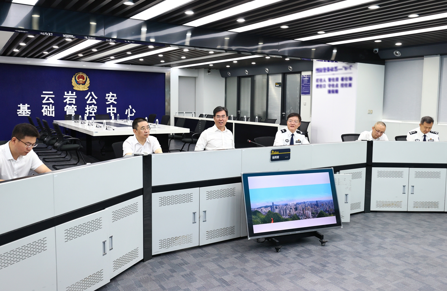 图为李炳军在贵阳市公安局云岩区分局基础管控中心调研。