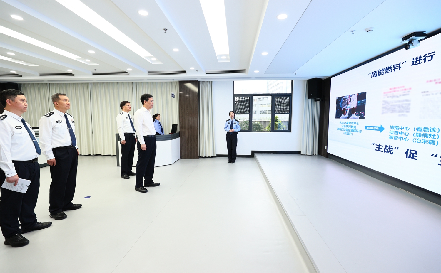 图为李炳军在贵阳市公安局观山湖区分局执法办案管理中心调研。