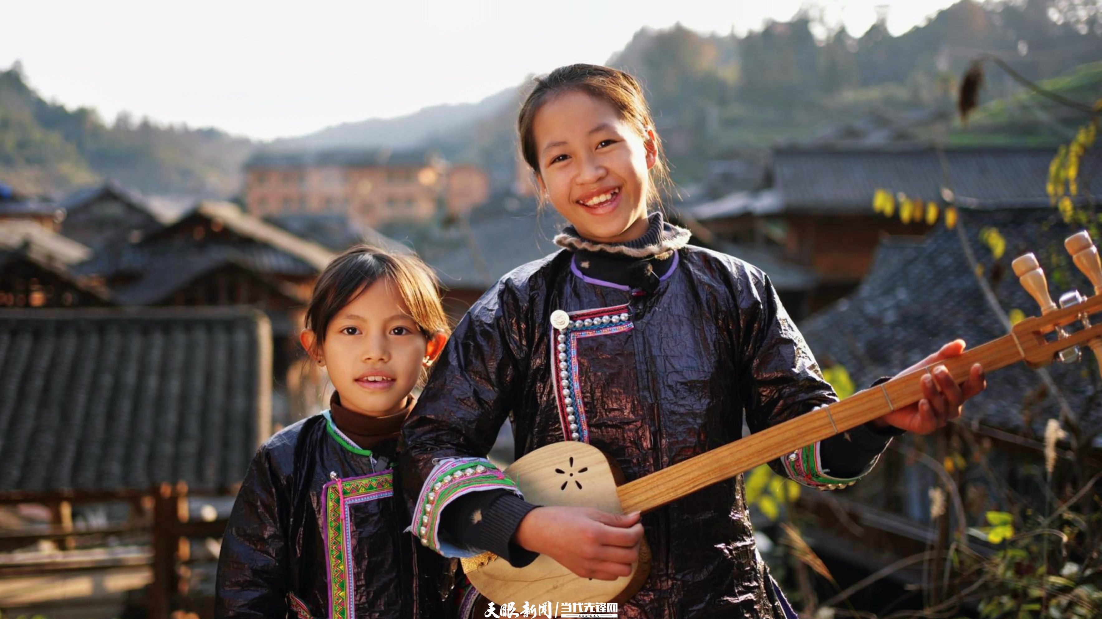 黔东南黄岗侗寨正在弹琴唱歌的小朋友。陈祖嘉 摄