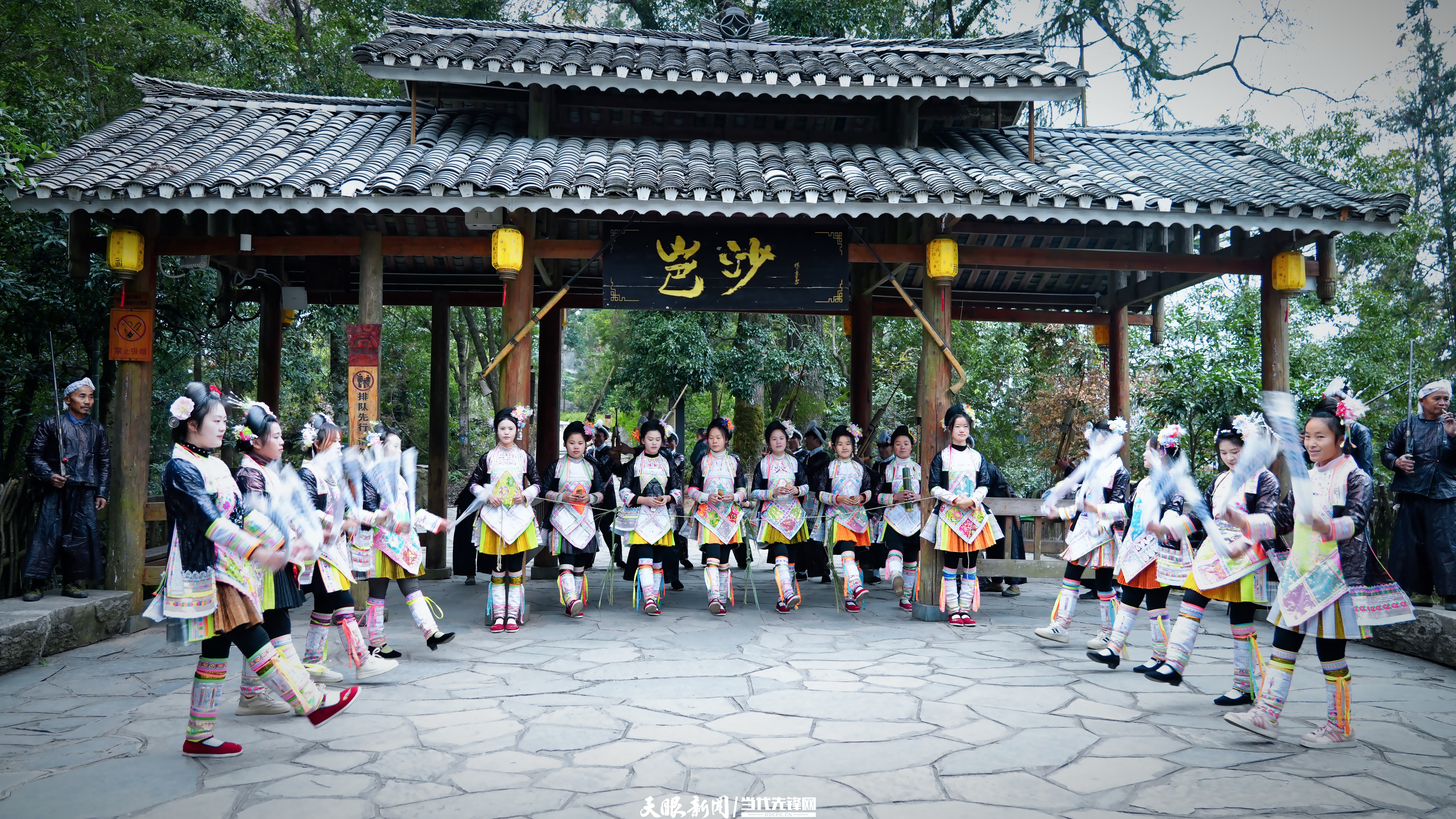 黔东南州岜沙苗寨的苗族女性服饰亮丽,融入织染绣等多种技艺。陈祖嘉 摄