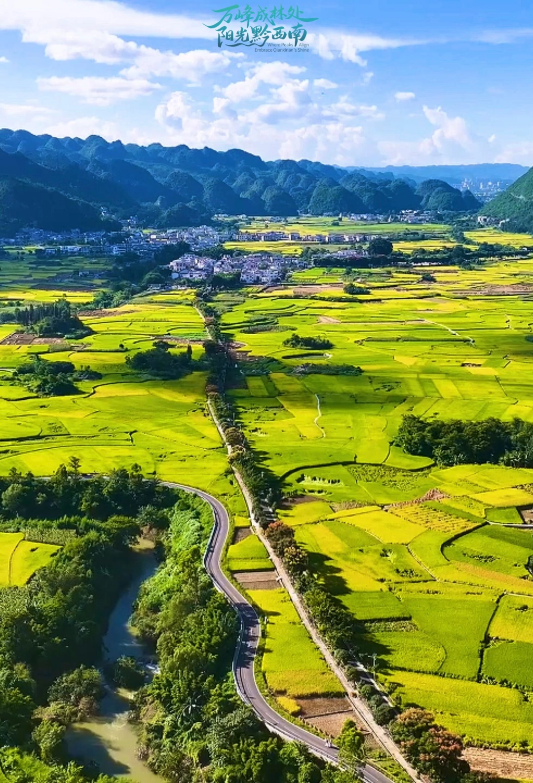 万峰林的秋天,是一场色彩的盛宴。稻谷金黄,山影青黛,河水碧绿。偶尔有游客在山间喊一声“好美”,回音在峰谷间盘旋,像是在为这片土地鼓掌。