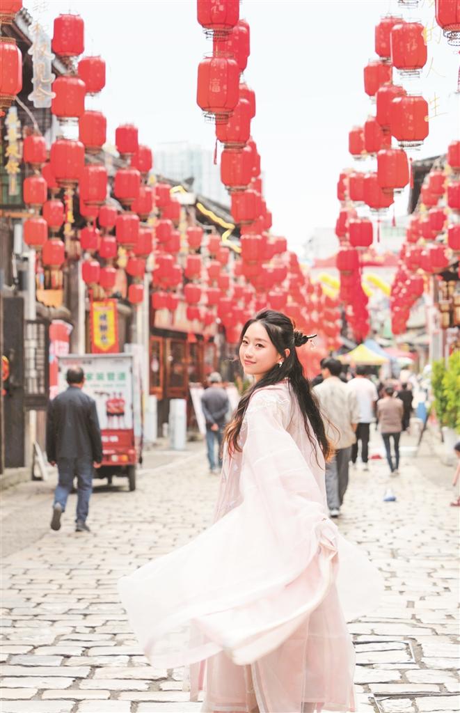 身着汉服在安顺古城历史文化街区漫步。 贵州日报天眼新闻记者 何晓璇 摄