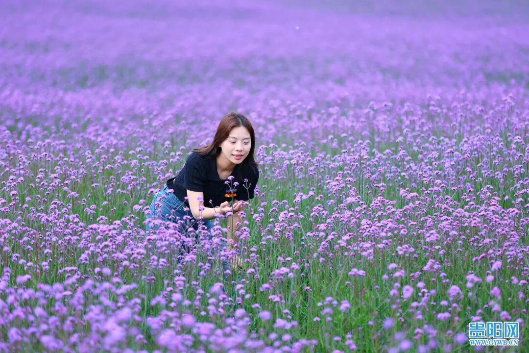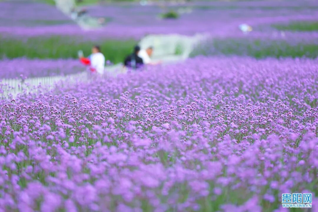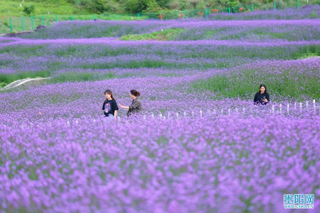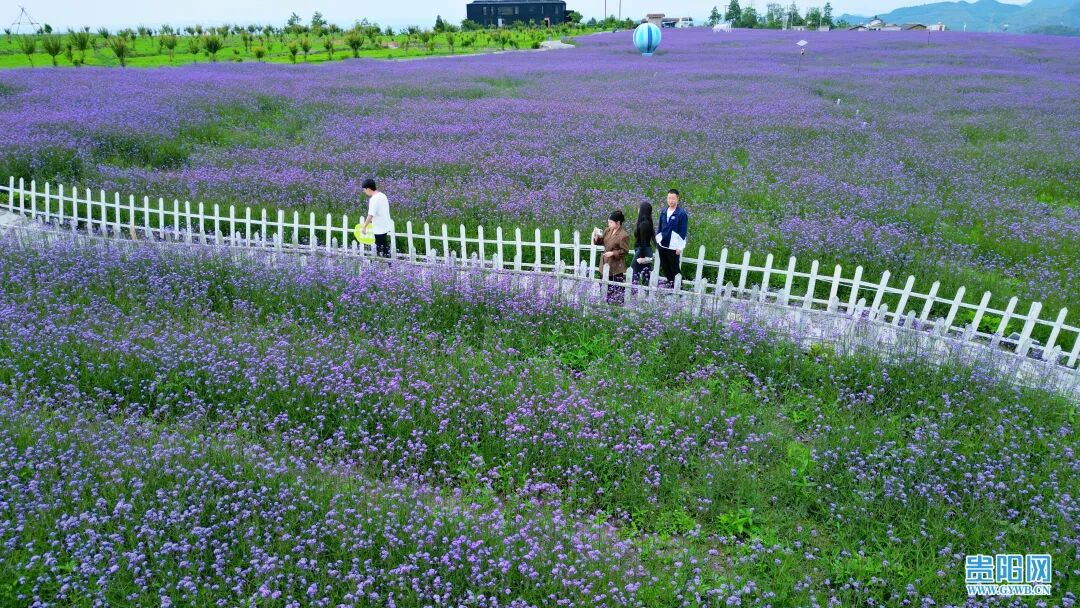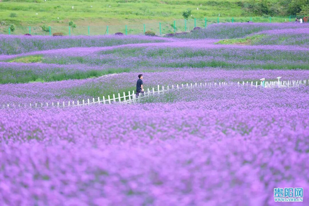 5月7日,游客在花溪区高坡乡石门村锦绣田园马鞭草花海中赏花畅游。时下正是马鞭草花盛开绽放的季节,在花溪区高坡乡石门村,近300亩马鞭草花已经逐渐绽放,尽管未到盛花期,但现场充满浪漫气息的紫色花海早已吸引了不少游客前往旅游打卡。据了解,马鞭草花期两个月左右,盛花期在5月中旬,期间,紫色花海又将再一次助力高坡乡石门村乡村旅游大发展。