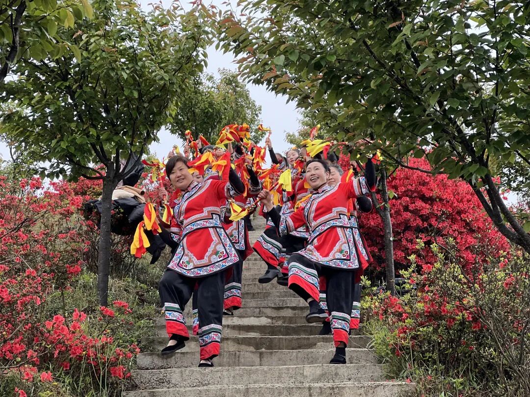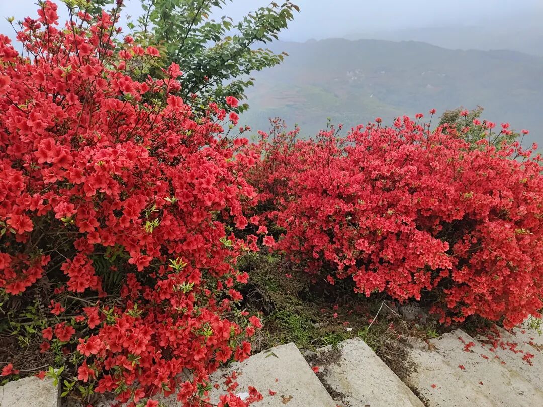 在海拔2300多米深处的云贵高原中部,赫章县财神镇彝毛梁子,在满山的红色当中,天地之间都散发出小叶杜鹃花的幽香,在很多地方的杜鹃花都已经凋谢的时候,这里的小叶杜鹃开得正艳,杜鹃花随着微风轻轻地摇曳,花香伴随着微风沁人心脾,漫山遍野的红色令人惊叹,让人流连。
