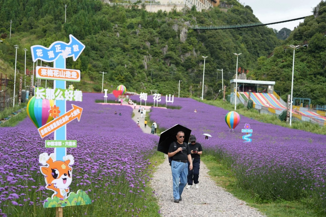 国庆中秋长假,六盘水化身拍照胜地,迎来一波赏花打卡的热潮。梅花山景区的马鞭草花海与大湾镇韭菜坪的万亩野生韭菜花遥相呼应,共同织就一幅流动的紫色画卷。连绵起伏的紫色波浪,成为游客镜头中最动人的风景。