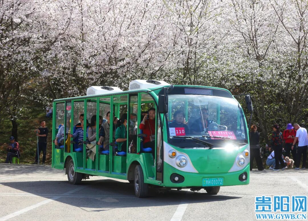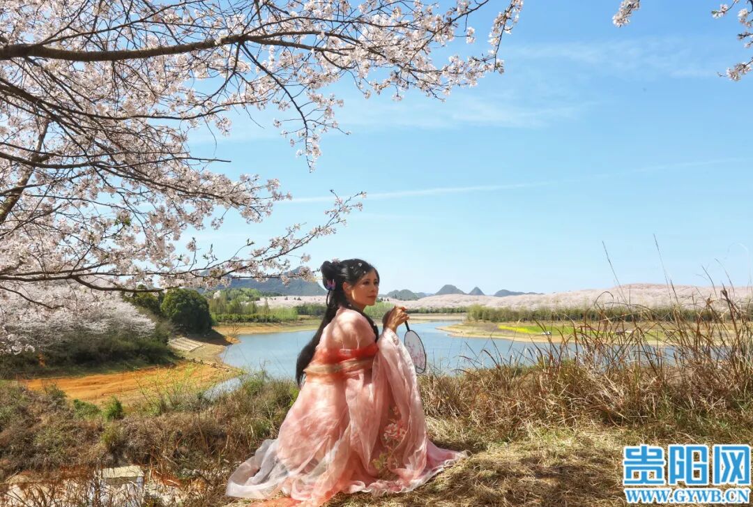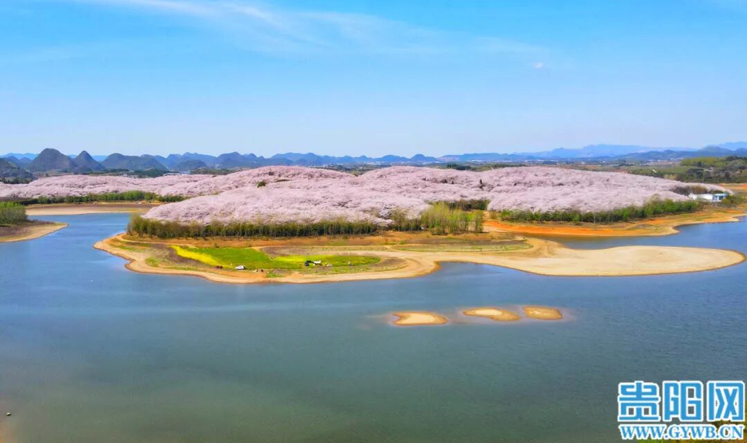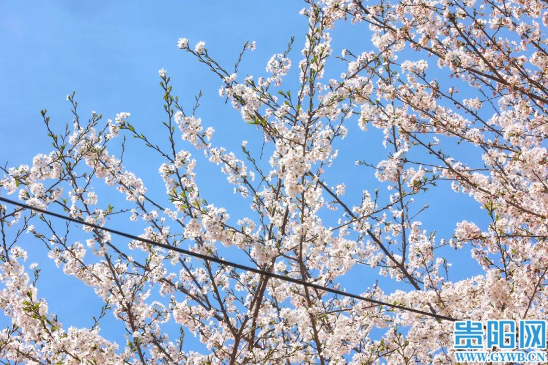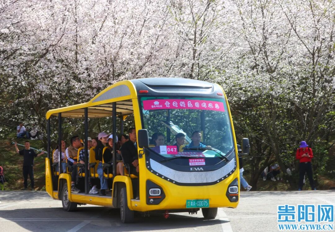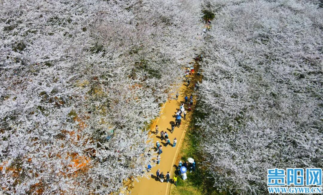 3月25日,贵安新区万亩樱花园樱花竞相绽放,吸引众多游客和市民前往观赏。