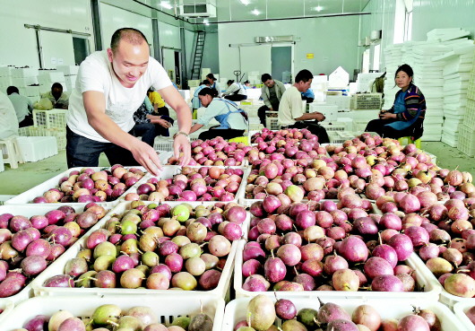 看到一箱箱刚采摘的百香果,黄胜江非常开心。