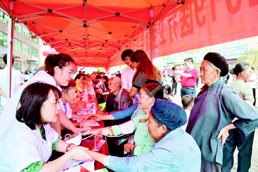 医疗专家走进黔西南州义龙新区新市民居住区为搬迁群众义诊。
