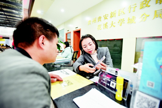 贵安新区行政审批局服务窗口工作人员热情向前来办事的群众介绍相关业务办理流程。