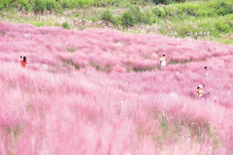 白云区牛场布依族乡石龙村盛开的粉黛乱子草吸引游客前来观赏。 曹廷飞 摄