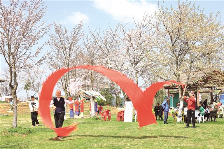 游客参与石龙樱花文化节活动。 曹廷飞 摄