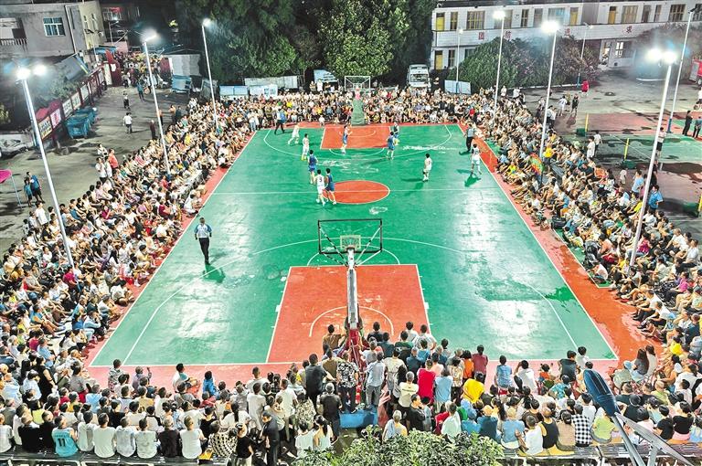 “加油、加油”“快投篮”“哇,好球!”7月28日晚,在坪地场中学篮球场上,石阡县坪地场乡第三届“黄花杯”篮球赛之冠军争夺赛在覃家营村代表队与老鸹林村代表队之间展开。场上球员攻防转换有序,场下观众热情高涨,不断用掌声、喝彩声为他们加油助威。最终,覃家营村代表队一举夺冠,获得三只本地山羊作为奖品。