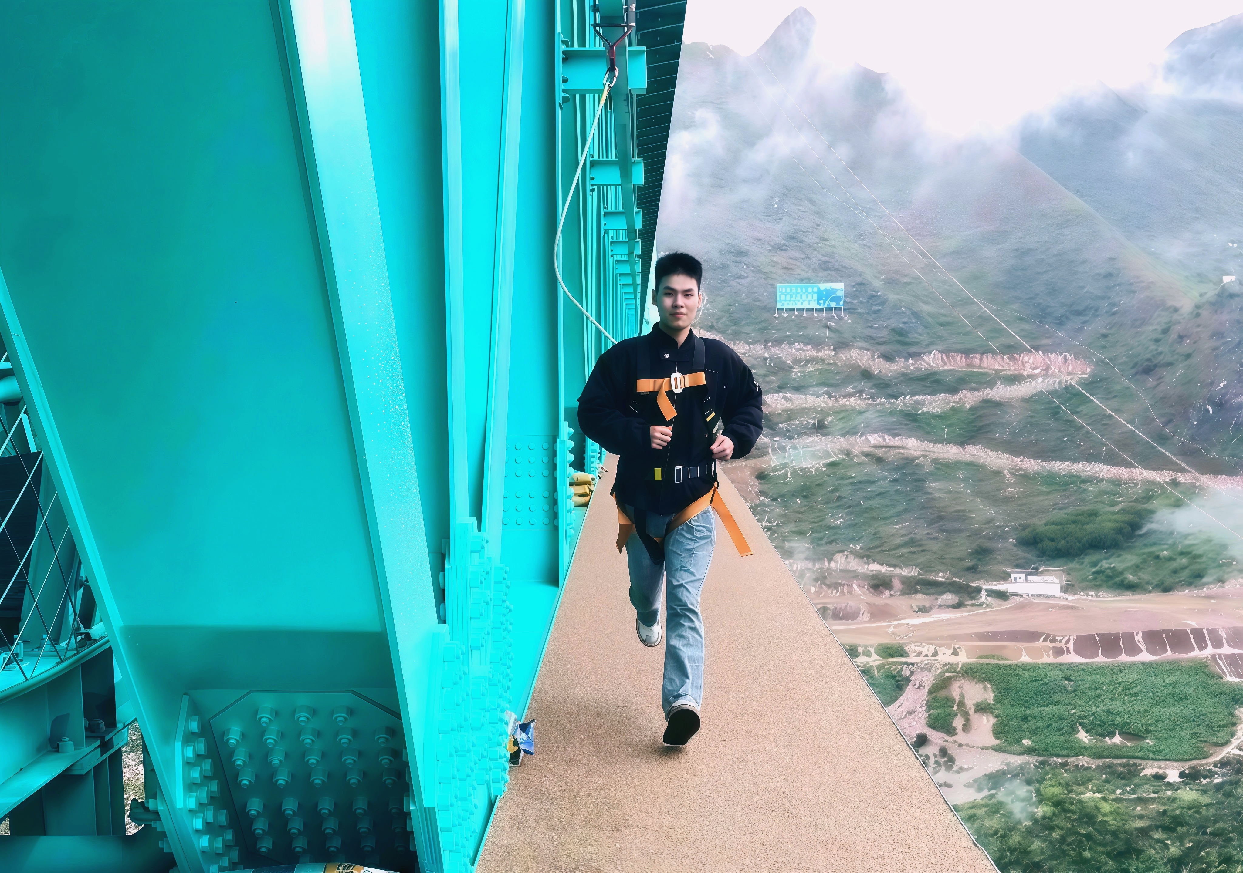 “来来来,在边缘走个模特步试试。”贵阳游客李元勋在朋友鼓励下,尝试沿着无护栏的步道边缘行走。“在600多米高空,仅靠安全绳保护,走在边缘格外刺激。”