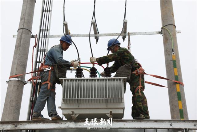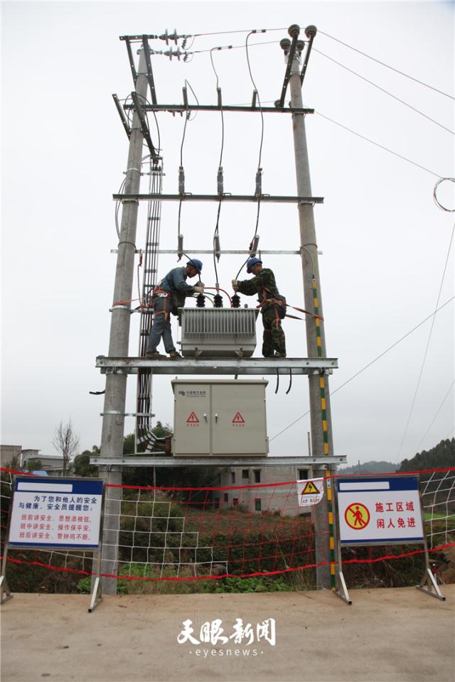 供电局加强农村电网改造升级,供电员工为农村地区安装专业变压器 陈举 摄