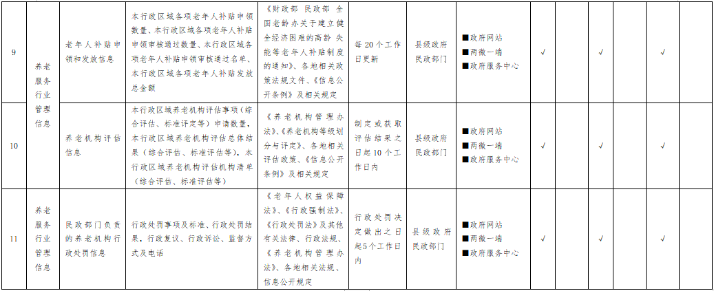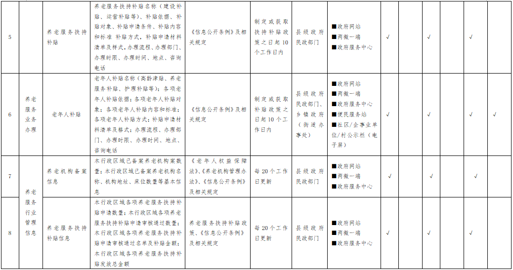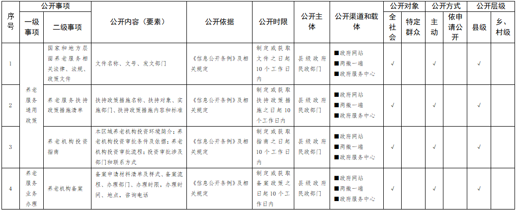 养老服务领域基层政务公开标准目录