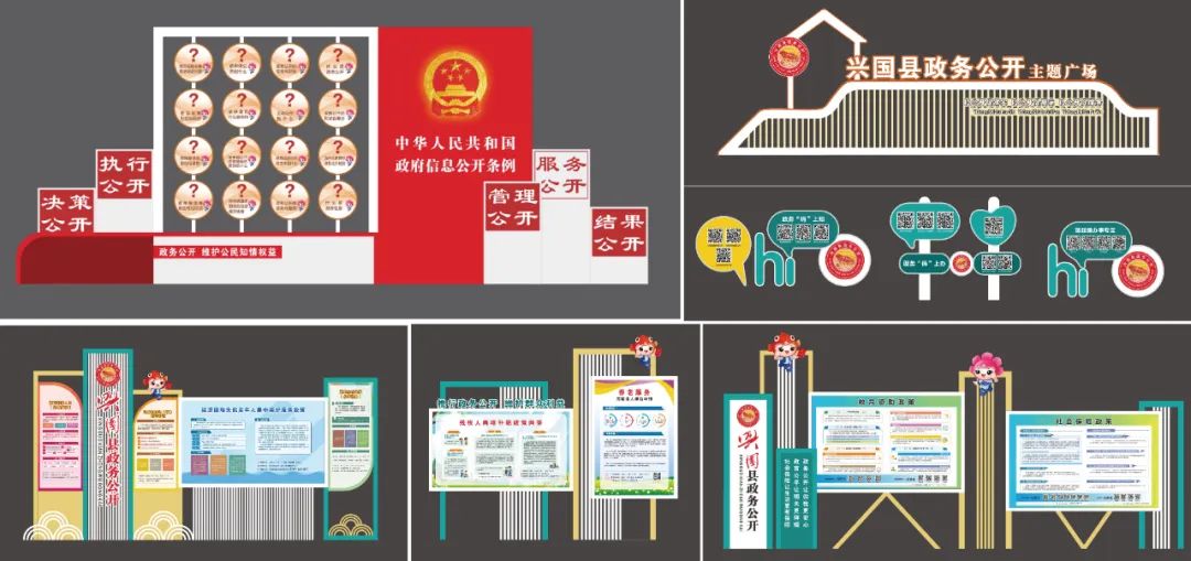 兴国县分别在“五福广场”、“小城故事书院文化街区”打造了集宣传、教育、互动等功能于一体的政务公开专区新场地,在兴国县政务公开主题广场和兴国县政务公开文化长廊设置了多个政务公开宣传栏,定期更新展示最新的政策法规、政务工作动态等信息。这些宣传栏采用图文并茂的生动形式,吸引群众驻足观看。例如,通过有趣的问答形式,向群众介绍城乡医保政策的缴费标准与缴费比例等内容。凭借多样化的展示形式和内容丰富的宣传材料,将政务信息以更加生动、直观的方式呈现给群众。