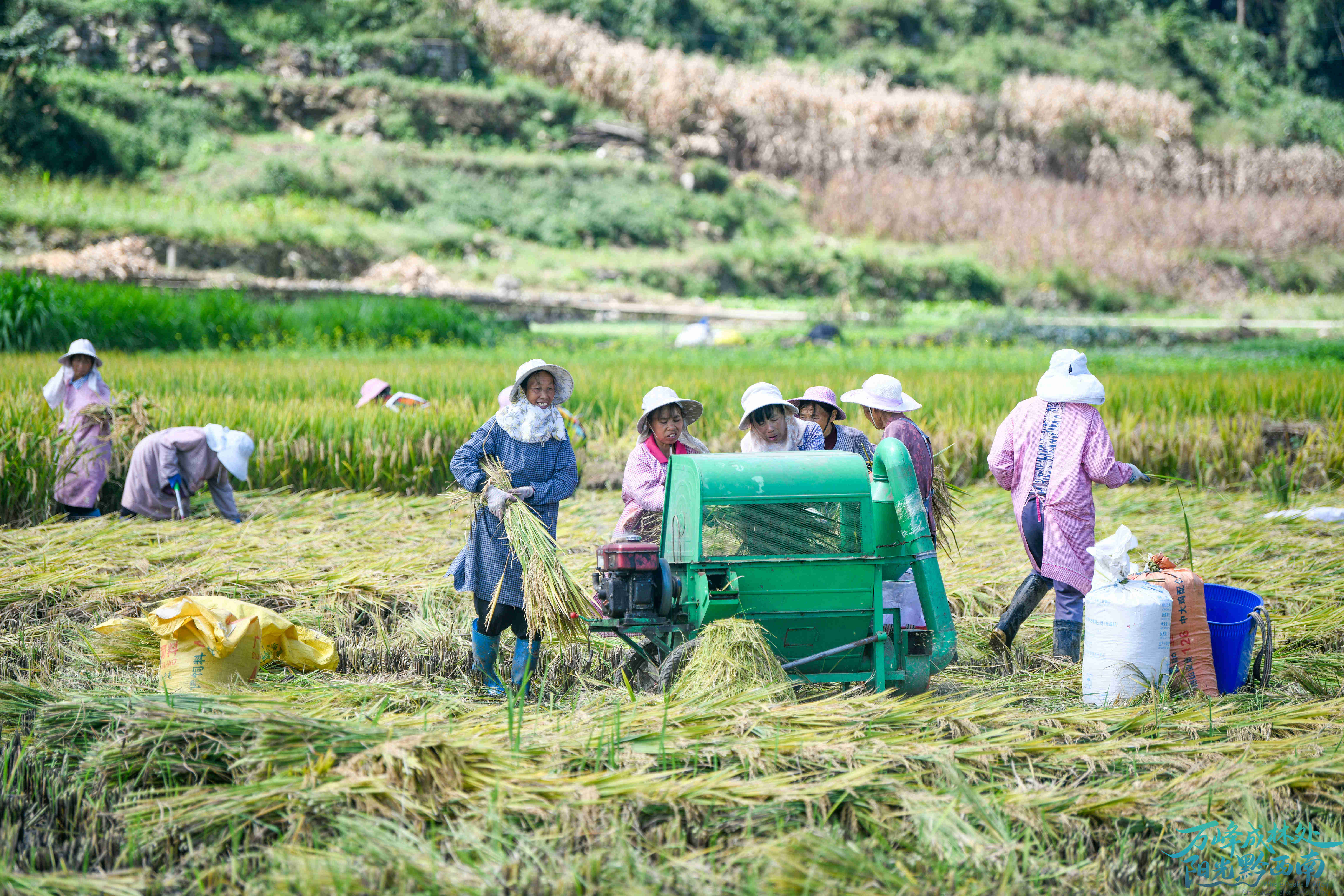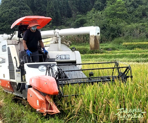 安龙县招堤街道海庄村收获水稻。(图/刘朝富)