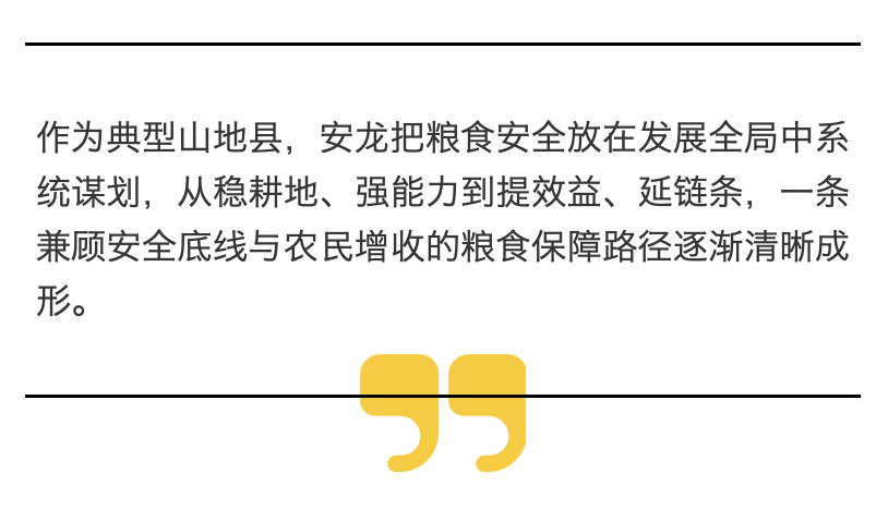 从田间到粮仓,从保供到增值,安龙以一项项务实举措,把国家粮食安全要求落实到山地县的具体实践中,粮食安全根基不断夯实,也为全省粮食稳产保供提供了有力支撑。