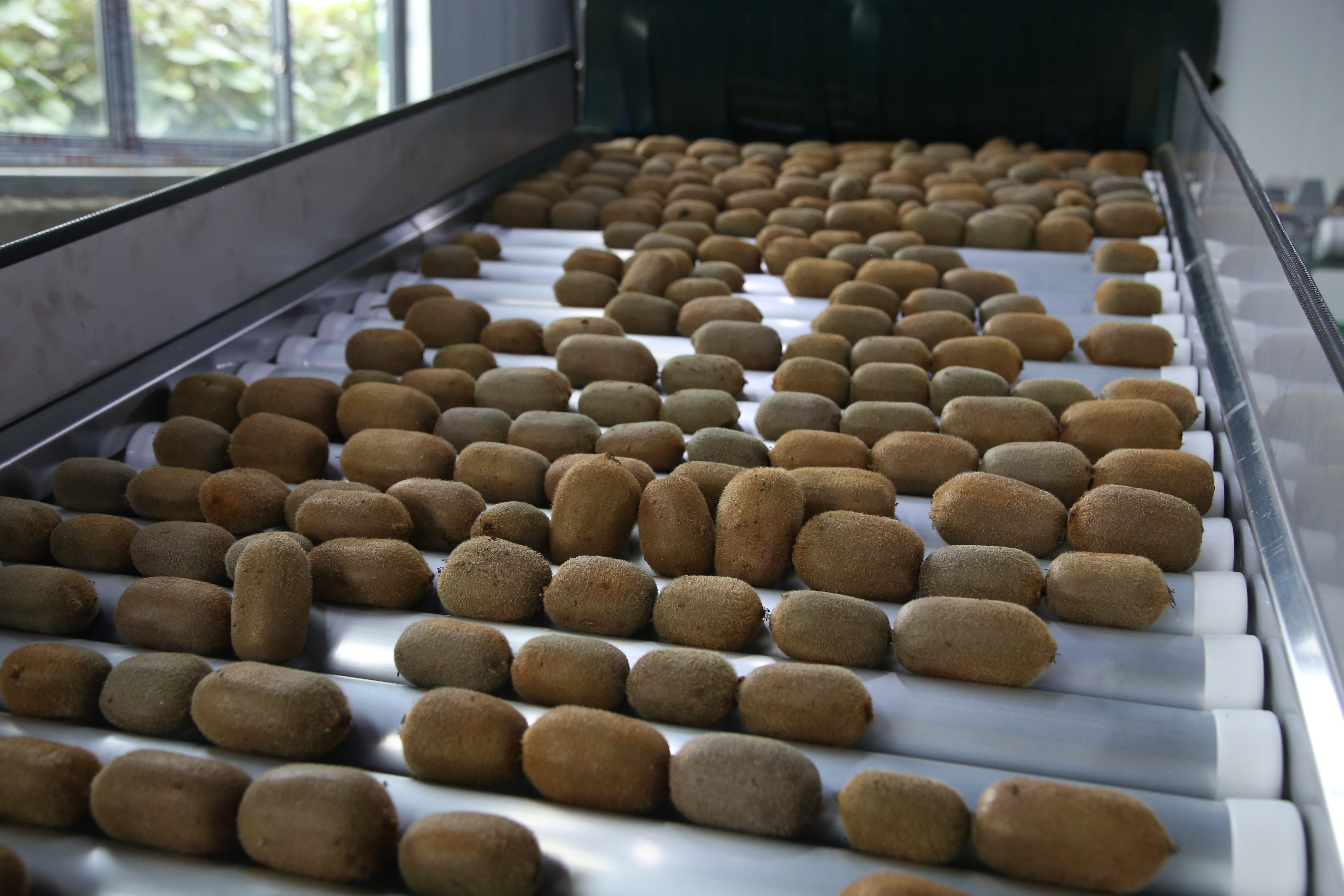 修文县六桶镇坪山村向阳合作社猕猴桃基地的分选线。 姜继恒/摄