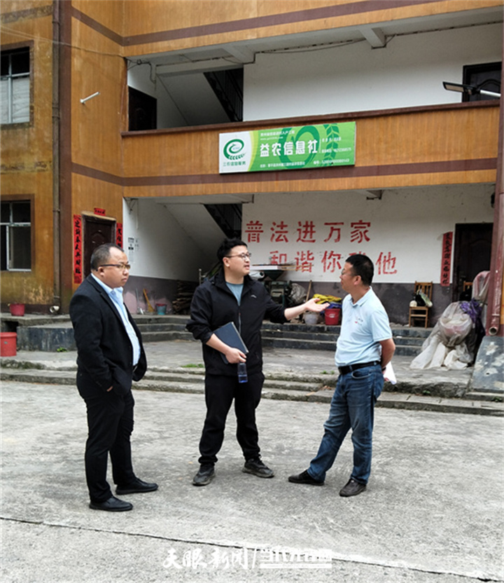姜立康(右一)在洪州镇调研林木采伐管理制度改革试点工作。