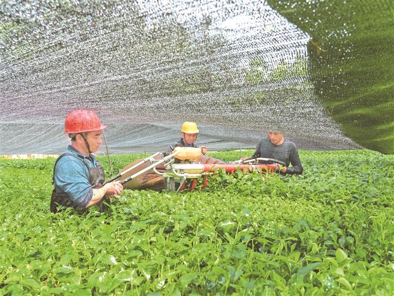 湄潭县抄乐镇群丰村有机茶园机采现场。
