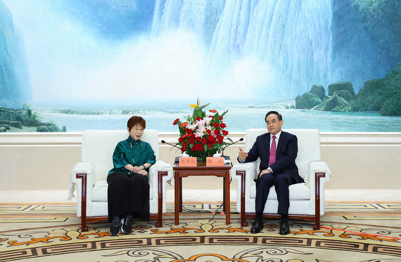 9月17日,省委书记徐麟在贵阳会见出席2025年贵州·台湾经贸交流合作恳谈会的中国国民党前主席、中华青雁和平教育基金会董事长洪秀柱等台湾嘉宾代表。